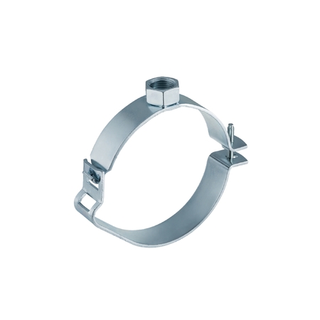Bratara pentru fixare pe tevi filetate, pentru fixarea tevilor pe tavan si pereti, pentru fixarea cu console glisante a tevilor in legatura cu benzi de insertie din plastic pentru suporturi pentru tevi, pentru fixarea in punct de ancorare a tevilor in combinatie cu bucse cu flansa dubla.