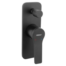Baterie încastrată cadă/duș Ferro Stratos Black, finisaj negru mat. Set complet cu parte îngropată și aparentă, comutator 2 funcții, cartuș ceramic 35 mm, racorduri G1/2″, rozetă 20×7 cm.