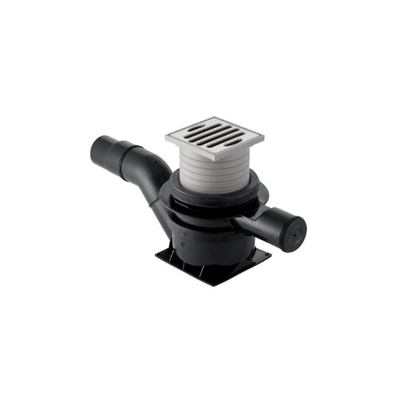 Sifon de pardoseala de baza CASA PE/PP din plastic polietilenic si otel inoxidabil, scurgere in directie orizontala, diametrul interior al iesirilor 40 mm, latimea gratarului 92 mm, diametrul exterior al tevii de conectare 50 mm.