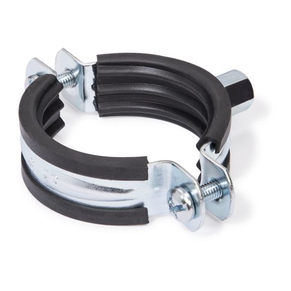 Clema de sprijin cu insertie de cauciuc si distantier conform DIN 4109. Material: banda de otel galvanizat.