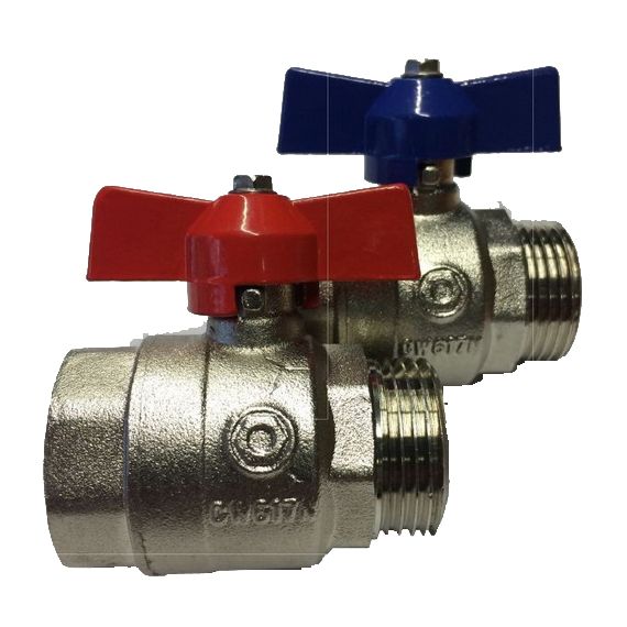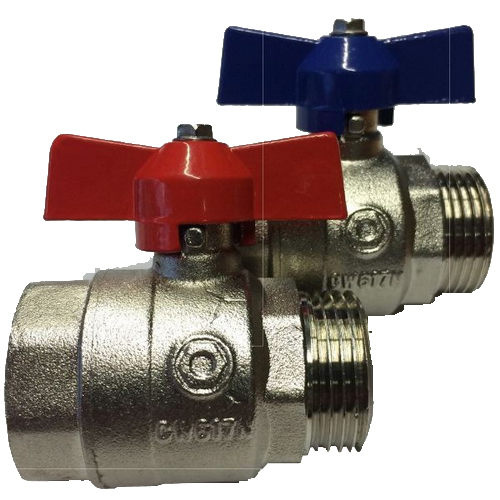Set robineti cu bila de 1" cu filet interior/exterior pentru gama de distribuitoare-colectoare din otel inox prevazute cu piulita olandeza.Acest robinet este special construit pentru etansare cu garnitura plata.