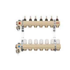 Ferro Dist. 1" 11 Circuite cu Debitmetre, Rob. Termostatati 16X1/2". material alamă, racord 1/2".
