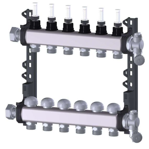 Purmo PREMIUM - distribuitor / colector din inox cu 11 circuite, debitmetre si robineti termostatati pentru sistemele de incalzire si racire prin suprafete radiante.