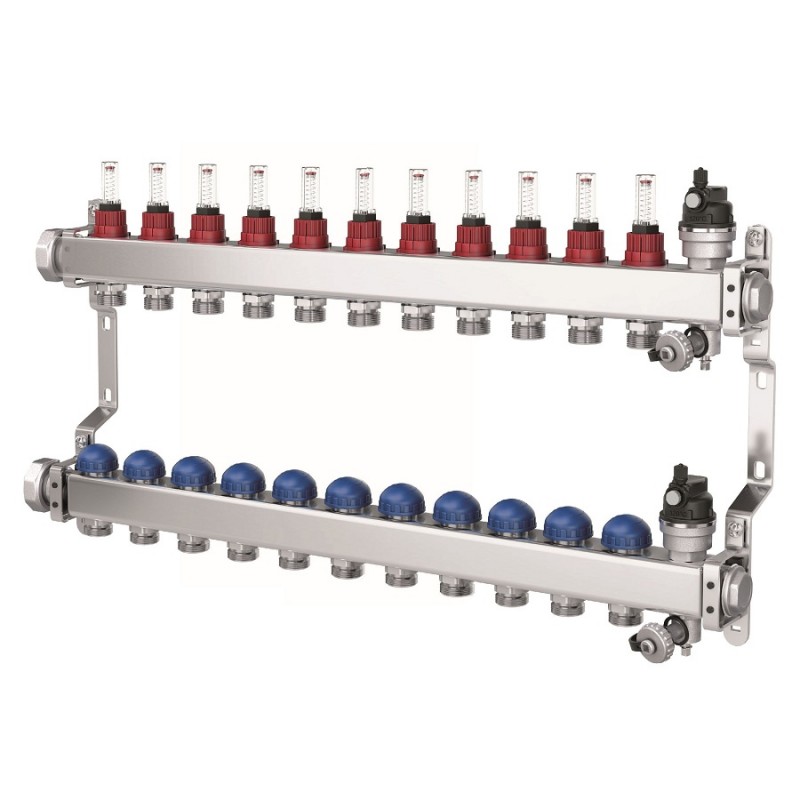 Purmo PREMIUM - distribuitor / colector din inox cu debitmetre si robineti termostatati pentru sistemele de incalzire si racire prin suprafete radiante.