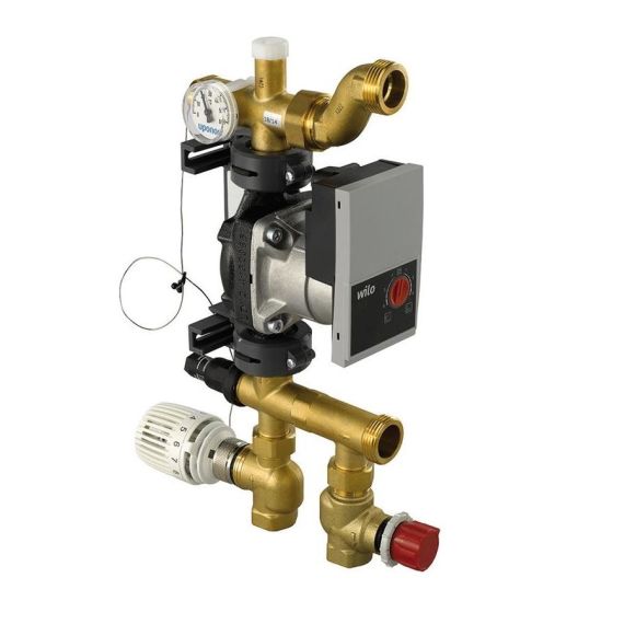 Poate asigura reducerea temperaturii si circulatia agentului termic in sistemele de incalzire prin pardoseala in sistemele mixte (conectat la coloana de radiatoare sau ventilo-convectori).
